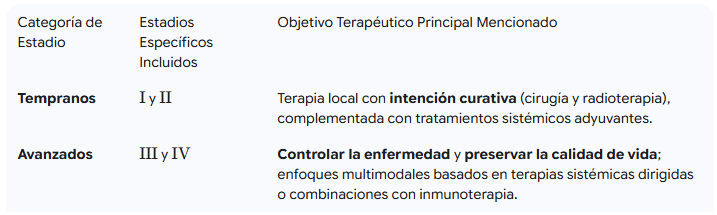 Esto es vital, pues mejora significativamente la capacidad de predecir el resultado y, por ende, de escoger los tratamientos. Así, dos tumores con el mismo tamaño podrían tener pronósticos muy distintos si difieren en el receptor HER2 o en su índice de proliferación. En la práctica clínica, los estadios tempranos (I y II) son, generalmente, candidatos a terapias locales con intención curativa (cirugía y radioterapia), complementadas con tratamientos sistémicos adyuvantes en función de la biología. En contraste, los estadios avanzados (III y IV) exigen enfoques multimodales, cada vez más basados en terapias sistémicas dirigidas o combinaciones con inmunoterapia, cuyo objetivo es controlar la enfermedad y preservar la calidad de vida.