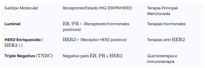 Clasificación moderna: subtipos moleculares (ER/PR/HER2, triple negativo)