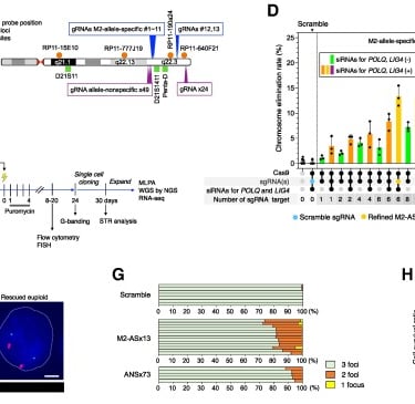 En cuanto a las modificaciones genómicas que acompañan a la eliminación cromosómica, este estudio encontró que los cortes inducidos por Cas9 provocaron alteraciones genómicas, como inserciones y deleciones pequeñas, que no fueron detectadas mediante análisis cromosómicos convencionales como el G-banding. Sin embargo, en los casos donde los cromosomas no fueron eliminados completamente, se introdujeron mutaciones en los cromosomas residuales, lo que subraya la importancia de mejorar las tasas de eliminación cromosómica para reducir la carga genética indeseada. Para mejorar estos resultados, se utilizó una estrategia de supresión temporal de los mecanismos de reparación del ADN, lo que aumentó significativamente la tasa de eliminación cromosómica, al promover que las células no repararan los cortes, sino que eliminaran el cromosoma dañado.
