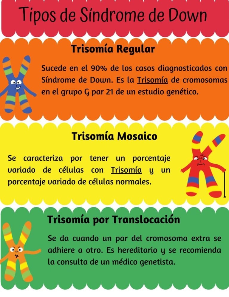 Trisomía 21 completa: Representa el 95% de los casos y ocurre cuando todas las células del cuerpo tienen una copia extra del cromosoma 21.