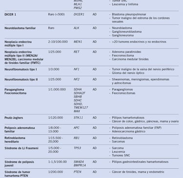 Algunos síndromes de predisposición al cáncer presentan características fenotípicas específicas que permiten a los médicos hacer un diagnóstico clínico temprano. Ejemplos de estos síndromes incluyen: