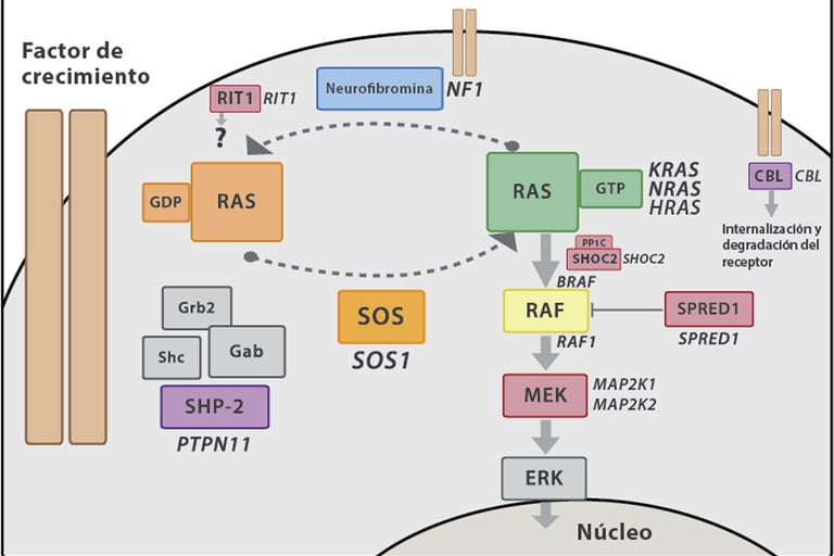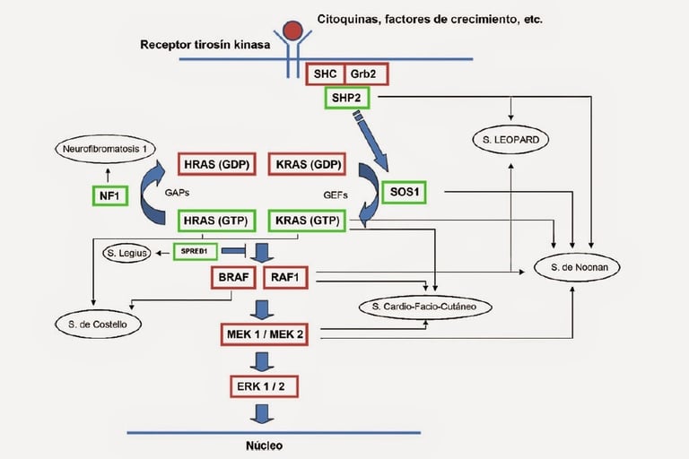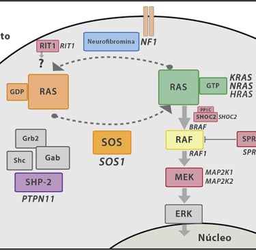 · Síndrome de Noonan: Asociado con una variedad de malformaciones congénitas, incluyendo problemas cardíacos, de crecimiento y faciales. Este síndrome aumenta el riesgo de leucemia.