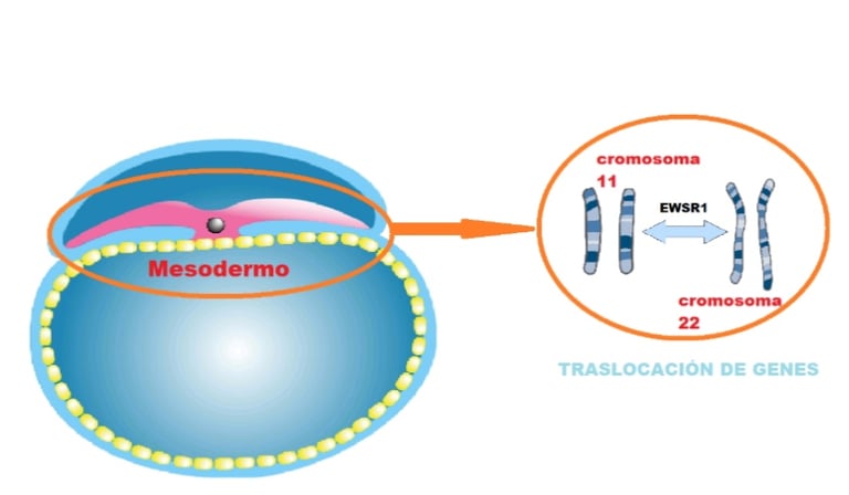 Se ha demostrado que las mutaciones germinales heterocigotas patogénicas (o potencialmente patogénicas) en varios genes de reparación del ADN están enriquecidas en una cohorte de pacientes con sarcoma de Ewing. Los autores sugieren que estas mutaciones germinales heterocigotas podrían provocar rupturas en el ADN y, posteriormente, la fusión entre el gen EWSR1 (locus 22q12.2) y los genes que codifican la familia de factores de transcripción ETS (fusión EWSR1–ETS), una hipótesis que podría ser relevante para otros tipos de cáncer y que debe ser investigada más a fondo. Los estudios de asociación a nivel genómico también han resaltado la cooperación entre los microsatélites polimórficos constitucionales y las fusiones adquiridas EWSR1–ETS; el reemplazo de una A por una T en la región potenciadora del gen EGR2 (locus 6q23.3) afecta sustancialmente la capacidad de las proteínas quiméricas EWSR1–ETS para unirse a esta región reguladora y, por lo tanto, ejercer sus efectos oncogénicos. Este ejemplo ilustra nuevamente el papel de la parte no codificante del genoma en la susceptibilidad al cáncer infantil y puede explicar en parte por qué el sarcoma de Ewing es más prominente en pacientes de ascendencia europea blanca que en otros orígenes étnicos.