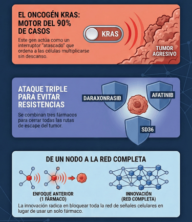 El gran problema siempre ha sido que los tumores encuentran "vías de escape" a través de rutas alternativas como YAP1 o variantes de MEK/ERK. Por eso, el enfoque del bioquímico Dr. Mariano Barbacid es tan innovador: al bloquear toda la red de señales en lugar de un solo nodo, se le cierran todas las puertas al cáncer. Estamos, sin duda, ante uno de los avances más prometedores para entender y vencer la complejidad biológica de estos tumores.