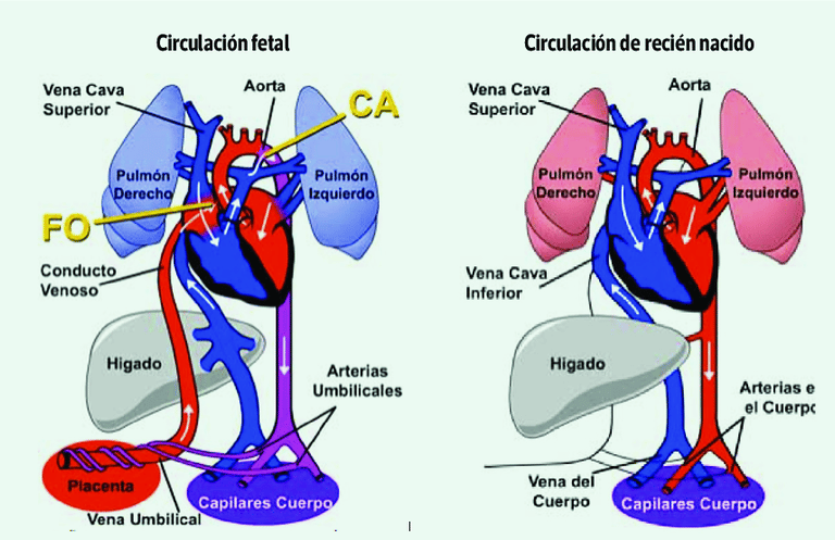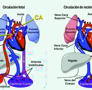 At birth, these fetal shunts progressively close, adapting circulation to extrauterine life. However, in some congenital heart defects, this process does not occur properly, which can lead to significant hemodynamic disturbances.