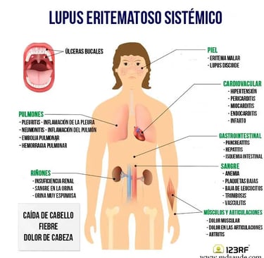 El lupus eritematoso sistémico es una enfermedad autoinmune crónica en la que el sistema inmunitario, que normalmente protege al cuerpo contra infecciones, ataca erróneamente los tejidos sanos. Esta condición puede afectar múltiples órganos, entre ellos la piel, las articulaciones, los riñones, el cerebro y el sistema cardiovascular. Al tratarse de una enfermedad compleja y variable, sus síntomas pueden ser muy distintos de una persona a otra.