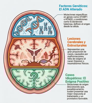 ¿Por qué se produce este fenómeno? Lo cierto es que, desde un punto de vista fisiopatológico, se ha demostrado que existen múltiples causas que pueden desencadenarlo. Ya hablemos de factores de origen genético, estructural o incluso metabólico, todos ellos terminan coincidiendo en un mismo problema: una disfunción de las redes neuronales. Esta falla de comunicación involucra zonas críticas para el desarrollo, como la corteza, el tálamo y el tronco encefálico. Al final, diferentes caminos llevan a un mismo error en el sistema.