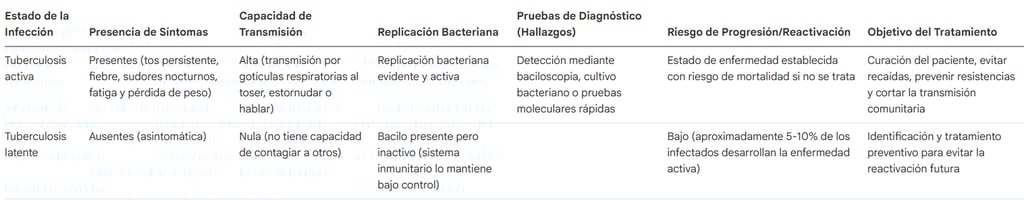 Sin embargo, el panorama cambia drásticamente cuando hablamos de la tuberculosis activa. En esta fase, existe una replicación bacteriana evidente que desencadena síntomas clínicos y permite que el patógeno se transmita a otras personas.